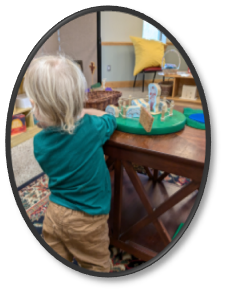 They thrive on routine and order which help the child discover and make sense of the world. The toddler atrium is simple and beautiful to allow children to know what to expect and where to find what they want. Materials are designed to help the child develop cognitive and motor skills, independence, and self-reliance, but most importantly it attends to their spiritual growth through the materials used and at our prayer table, which provides a place for scripture presentations, sacred gestures, songs, and prayer. (Children 18 - 30 months are invited to join the toddler atrium when they show readiness. They must be able to walk while carrying materials, have reasonable control over their movements and are no longer putting things in their mouth.)